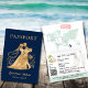 Passeport Code QR Carte du Monde Bleu Marine Or