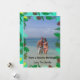 La carte de Noël sur le thème tropical de la plage présente des nuances de vert et de jaune et proclame "Passez des vacances à la plage !". Carte de vacances festive et amusante.
