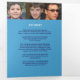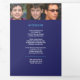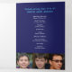 Simple modern graphic funeral program in dark blue, cyan, and white. Replace the sample text and placeholder photos with your own special photos and memorial order of service, obituary, reading or poem, and acknowledgments, and personal information details. Other matching funeral and keepsake remembrance items are available. Text graphic 'The passing of a legend' and design by www.mylittleeden.com