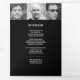 Simple modern graphic funeral program in black and white. Replace the sample text and twelve placeholder photos with your own special photos and memorial order of service, obituary, reading or poem, and acknowledgments, and personal information details. Other matching funeral keepsake remembrance items are available. Text graphic 'The passing of a legend' and design by www.mylittleeden.com