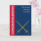 Share your pride with the new graduate with this passing out parade congratulations card that highlights the values of the UK Army. A bright red vertical band contrasts nicely with the deep blue background and golden coloured military swords. A proud moment that will be cherished forever.