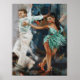 Vibrant abstract painting of a intense tango dance between a man in white shirt and pants and a woman in shimmering green fringed dress with red heels. Dynamic brushstrokes capture raw emotion and movement—perfect for dance lovers!