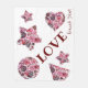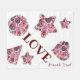 Passion Red Rosas, Gerberas and Carnations in a heart, circle, stars in a white surface with a word LOVE and signed .