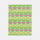 Cozy fleece blanket features an original marker illustration of a row of sugary fruit slice candies.