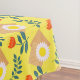 A Tablecloth That's Designed In A Cheerful Yellow Floral With Matzah Crackers For Passover Celebrations