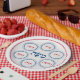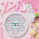 An artistic take on the traditional Seder Plate with Hebrew names for each of the symbolic foods.