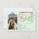 These fun wedding save the date cards are designed to look like a passport with a green leather background, an American eagle, and gold print. The back resembles the inside of the passport with a photo and mock port of entry arrival stamps listing your wedding destination. Unique, cute, and creative way to let your friends and family know to keep the date open for travelling to your wedding.