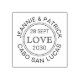 Destination wedding rubber stamp that looks like a personalized passport marking, with a date in the middle and names and location name or any text you want around the circle. DESIGNER TIP: Click CUSTOMIZE FURTHER to change fonts and text placement. Visit the Custom Paper Works Zazzle shop for more destination and beach wedding stationery.