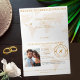 The front cover features an elegant gold heart, symbolizing your love and the journey you’re about to begin together. Inside, your favorite couple’s photo brings the invitation to life, creating a personal and meaningful reveal. All destination details are fully customizable, including your wedding location, names, date, font colors, stamp color and details, and event information, making this design perfect for weddings near or far.