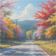A winding country road drifts gently through a dreamy landscape of pastel autumn trees, where soft pinks, golden yellows, fiery reds, and misty greens meet beneath a bright blue sky. The scene feels calm, nostalgic, and quietly hopeful, capturing the beauty of a peaceful journey surrounded by nature’s changing colors. Painted in a soft watercolor style with a whimsical, storybook touch, this artwork blends cottagecore warmth with folk-inspired charm and an airy, open sense of escape. The balanced composition and luminous color palette evoke slow afternoons, scenic drives, and the gentle rhythm of rural life. AI generated artwork.