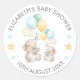Gorgeous elephant theme thank you sticker tag featuring adorable mommy and baby elephant with balloons in pastel blue, yellow, mint and grey