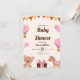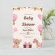 Set the tone for a magical celebration with this adorable pastel-themed baby shower invite! Featuring soft pink hot air balloons, candy accents, and cute characters like a teddy bear and rocking horse, this design is perfect for a sweet and playful party vibe.