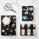 Elevate your gift-giving with this modern and stylish pastel baby wrapping paper set. This trio of coordinating designs features a playful mix of bees, butterflies, hearts, and adorable baby illustrations on a chic black background. Perfect for a gender-neutral baby shower or a new baby gift, these papers add a touch of modern flair to any present.