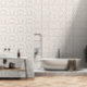 A minimalist pattern of repeating squares with a classical style Greek Key motif.