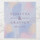 Add an extra special detail to your celebration with these gorgeous personalized wine labels featuring original artwork in a soft colour palette of pastel blue, pink, peach and lavender. This design is a modern take on the Memphis Style design that was popular in the 1980s. Easily personalize. Coordinating items available. Original artwork by Debbie at The Spotted Olive.
