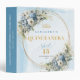 Celebra un momento inolvidable con este álbum de recuerdos personalizado para Quinceañera / 15 años, diseñado en un delicado estilo boho o bohemio. La combinación de tonos azul polvo, azul pastel y azul claro, junto con flores suaves, eucalipto y follaje verde, crea una estética elegante y moderna, realzada con detalles en dorado que aportan un toque de lujo y distinción.