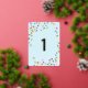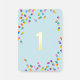 Our 'Confetti' first birthday party invitation features a fun and colourful polka dots on a pastel blue background with number one in gold foil. So cute! To see more matching items, check out our 'Confetti' collection.
