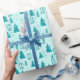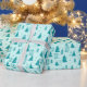 Pastel Christmas Tree Custom Monogram Initial Blue Wrapping Paper