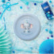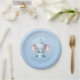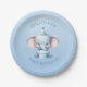 Serve up smiles with paper plates featuring a cute pastel blue elephant and birthday cake on a blue background.
