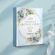 Celebra un momento inolvidable con este álbum de recuerdos personalizado para Quinceañera / 15 años, diseñado en un delicado estilo boho o bohemio. La combinación de tonos azul polvo, azul pastel y azul claro, junto con flores suaves, eucalipto y follaje verde, crea una estética elegante y moderna, realzada con detalles en dorado que aportan un toque de lujo y distinción.