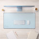 A trendy personalized pastel blue desk mat. This minimalist design features a soft gradient blue and modern calligraphy script font.
