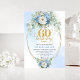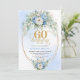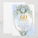 Pastel Blue Peonies Gold 60th Birthday Invitation