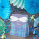 Custom pastel blue plaid favour boxes with "thank you" text (option to delete text or customize with your own).
