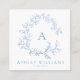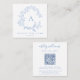Pastel Blue QR Code Monogram Floral Crest Square Business Card