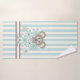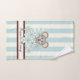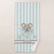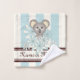 The product design features a baby koala surrounded by flowers. The adorable animal cartoon with pastel blue stripes makes a cute and unique bath towel set with personalized text.