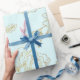 Pastel Blue, with Gold Roses. Wrapping Paper