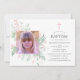 Organic inspired woodland forest greenery blush pink and mint pastel shades baptism, christening or dedication invitation designed to be quickly and easily customized to your event specifics. A square shaped photo is recommended.
