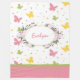 Add a beautiful touch of springtime to your home bedroom decor with this butterfly floral fleece blanket. Blanket has a pattern of pastel pink, yellow, and green butterflies and polka dots. In the centre there's a place for your custom text, such as a first name, in the middle of a wreath of flowers.