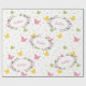 Add a beautiful touch of springtime to your party with this butterfly floral wrapping paper. Gift wrap has a pattern of pastel pink, yellow, and green butterflies and polka dots. In the centre there's a place for your custom text, such as a first name, in the middle of a wreath of flowers.