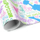 Cheerleading typography wrapping paper with beautiful, bright colours! Cheer terms and phrases such as, "partner stunt, spotter, basket toss, herkie, pyramid, toe touch", and more fill this gift wrap making it the perfect for any cheerleader!