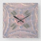 This wall clock features a vintage bedspread pattern that lends a lovely pastel look for a bedroom.