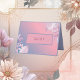 Immerse your wedding with romantic pastel Folded Wedding table Cards, perfect for adding a touch of simple elegant charm to your table organization. Each card has abstract pastel cherry blossom sakura and a dusty blue and pink blush gradient colour.