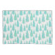 A winter pattern of illustrated pastel blue and green Christmas trees arranged into a never ending forest of festive trees. They are decorated with garland and stars.