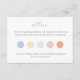 This modern pastel dots wedding dress code insert card, features 5 editable colour options against a white background and the option to include a wedding website address. Customize to make it your own. Use Zazzle's own EDIT Tool to change the colour of each dot to suit your preference. Ensure that both the fill and border colours are the same for each colour dot.