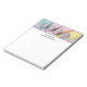 A notepad with a pretty pastel coloured photograph. Featuring cake decorating items in pastel blue, pink, peach and yellow. Set upon a wood table with little colourful beads.