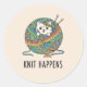 Pastel Colours Cute Cat Yarn Ball Knitting Design Classic Round Sticker