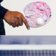 Pastel pink and blue swirl together to add hues of purple colour to the frosting texture design