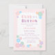 Elle est sur le point d'en livrer un petit qui sera aussi mignon qu'un bouton ! Cette simple invitation au baby shower dans la palette de couleurs pastel comporte des boutons en forme ronde classique et des formes spéciales de fleurs et d'étoiles. Bandes inclinées pour arrière - plan. Idéal pour la mère d'être qui attend une petite fille ! Personnalisez avec les détails du baby shower.