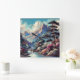 Pastel Drawing Ancient Asian Landscape Mountain Square Wall Clock