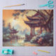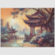Pastel Drawing of Ancient Chinese Pagoda Village Tissue Paper