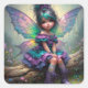 A dreamy pastel fairy with shimmering butterfly wings sits quietly in an enchanted forest. soft rainbow colors and magical sparkles create a whimsical fantasy design perfect for fairy lovers, fantasy fans, and magical themed gifts.