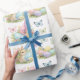 Celebrate spring and Easter with this soft, whimsical wrapping paper design featuring pastel Easter eggs, adorable watercolor rabbits, delicate wildflowers, and fluttering butterflies. Painted in a light watercolor style with gentle pastel tones, this charming pattern is perfect for wrapping Easter gifts, spring birthdays, baby showers, or seasonal celebrations.
