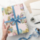 Pastel Easter Eggs, Bunny, Chick Floral Pink Wrapping Paper
