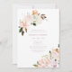 Trendy floral watercolor wedding engagement party invite in pastel shades of lilac and blush pink featuring lilies, magnolias, garden rose, peonies and foliage.