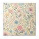 Pastel Floral Pink & Blue on Light Yellow Tile