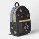 A black backpack with additional yellow and blue colours and pastel flowers to the tunes of Marguerite and a customizable text: perfect for a for romantic girlfriend!